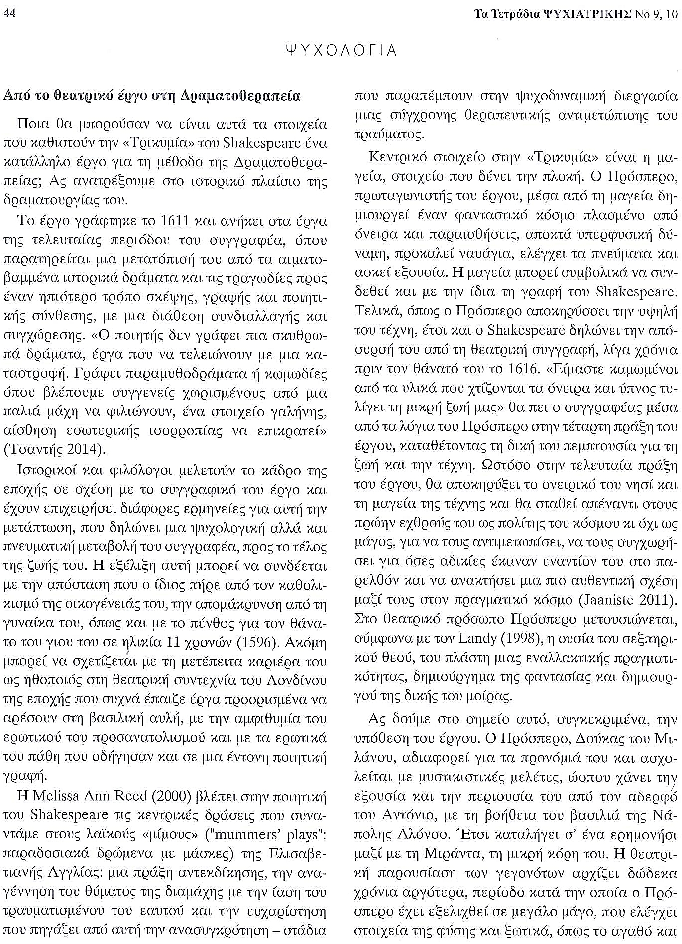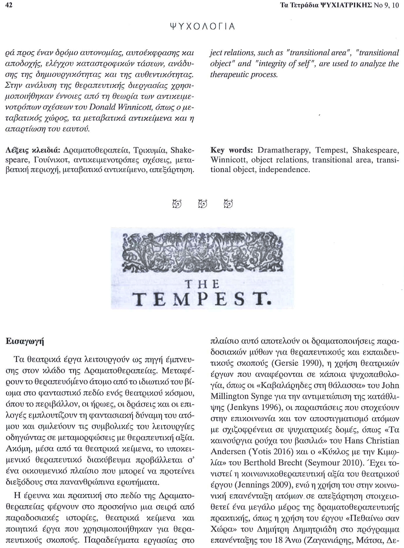 Δραματοθεραπεία μέσα από την «Τρικυμία» του Shakespeare