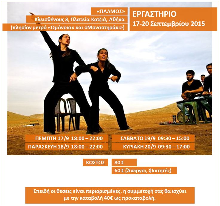 Η ομιλία θα γίνει το Σάββατο 19/9, στις 20:30, σε συνεργασία με το “Συνεργείο”, Κολωνού 31, Αθήνα. Η είσοδος για την ομιλία είναι ελεύθερη και ανεξάρτητη του εργαστηρίου. Θα τηρηθεί σειρά προτεραιότητας.