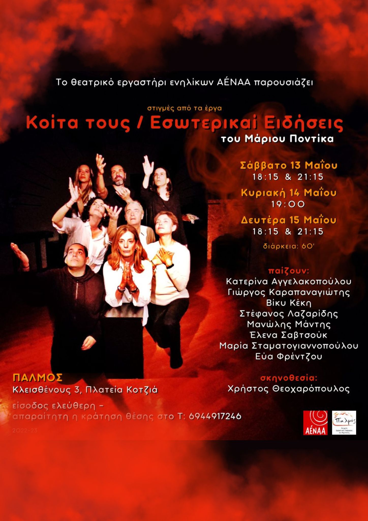 Μετά την επιτυχημένη πορεία των θεατρικών εργαστηρίων ενηλίκων των ομάδων «Όμικρον» και «Αντίστροφος Κύκλος» στο χώρο του «Παλμού», ξεκινήσαμε στα τέλη του 2022 μια νέα θεατρική ομάδα για ερασιτέχνες ηθοποιούς: την ομάδα «Αέναα». Το εργαστήρι απευθύνεται σε όλες και όλους εσάς που αγαπάτε τη θεατρική τέχνη και επιθυμείτε να δοκιμάσετε «από μέσα» τον τρόπο που λειτουργεί ο μαγικός αυτός κόσμος.