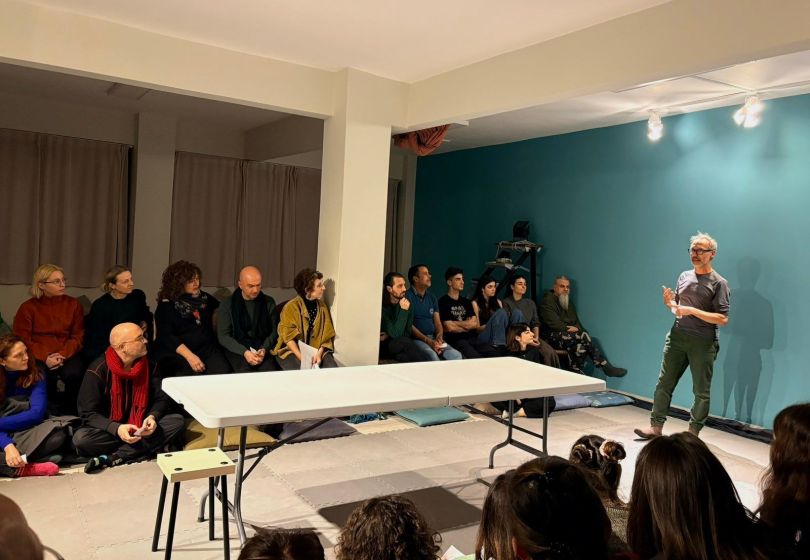 Τη Δευτέρα 22 Δεκεμβρίου 2025 παρουσιάστηκε στον «Παλμό» η πειραματική δουλειά του σκηνοθέτη και χορογράφου Eduardo Castro Neves. Ο Eduardo έχει συνεργαστεί με την ομάδα Playback Ψ σε προηγούμενα έτη και γνωρίζει καλά τον τρόπο λειτουργίας της ομάδας αυτής. Η μέθοδος που χρησιμοποιεί στις πρόβες μοιάζει κατά την ολοκλήρωσή της σαν μια καλοστημένη χορογραφία. Οι θεατές μοιράστηκαν αρχικά κάποιες σκέψεις δικές τους, αναζητώντας με παιγνιώδη τρόπο έναν συμπαίκτη, ένα άτομο να ακούσει αυτό που είχαν να πουν με λόγια. Στη συνέχεια, έφεραν στο μυαλό κάποιες λέξεις που αφορούν όλη αυτή την προσπάθεια του εγχειρήματος, δηλαδή από τι υλικό άραγε είμαστε φτιαγμένοι; Τι θέλουμε ή τι δεν θέλουμε από τον εαυτό μας και τους άλλους;